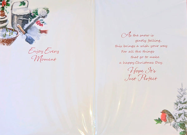 A standard size Christmas card. Across the miles at Christmas. With a full colour inside and a lovely verse.