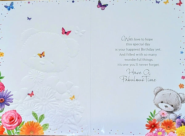 A standard size Birthday card, To  A Really Lovely Auntie, with a full colour inside and a lovely verse.