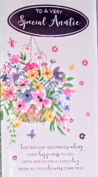 A slim size Birthday card, To A Special Auntie, with a full colour picture insert and a lovely verse.