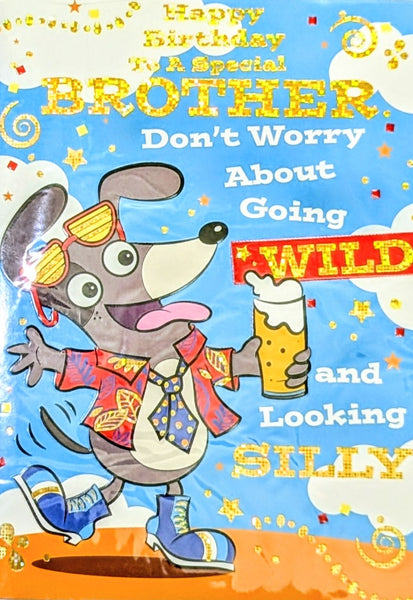 A standard size Birthday card, Brother Happy Birthday, with a full colour picture inside and a lovely verse.