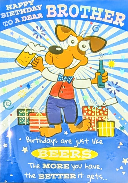 A standard size Birthday card, Brother Happy Birthday, with a full colour picture insert and a lovely verse.