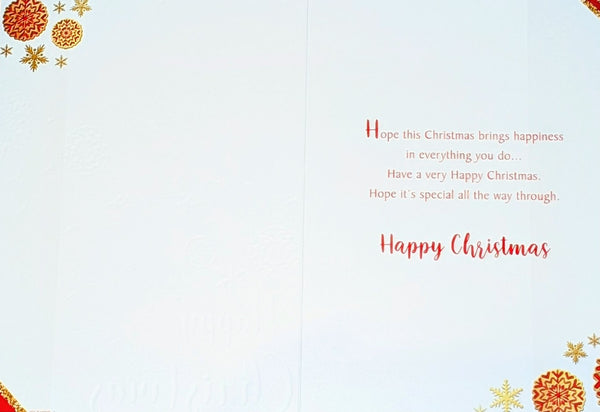 A standard size christmas card, To A Fantasric Brother & Sister - In - Law, with a full colour picture inside and a lovely verse.