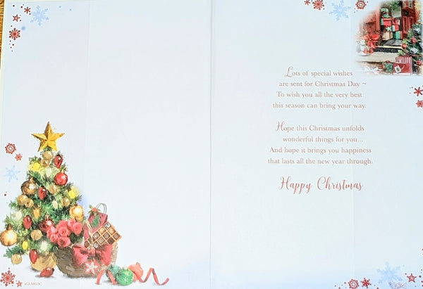 A standard size Christmas card, To A Wonderful Brother & Sister - In - Law, with a full colour picture insert and a lovely verse.