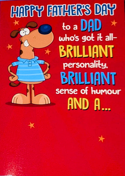 A standard size Father's Day card, To A Very special Dad, with a full colour picture inside and a funny joke.