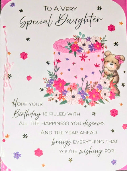 A large size Birthday card, To A Wonderful Daughter, with a full colour picture insert and a verse.