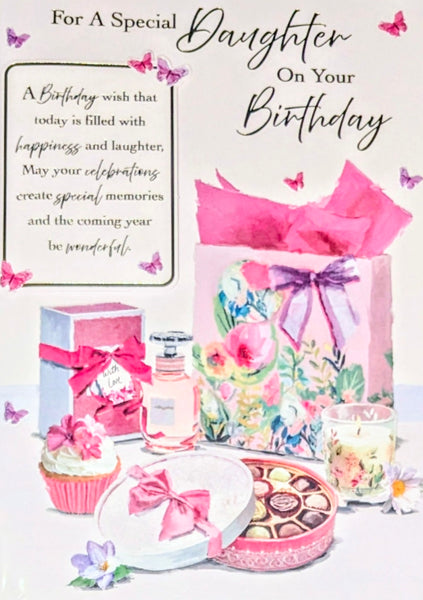 A large size Birthday card, To A Wonderful Daughter, with a full colour picture insert and a lovely verse.