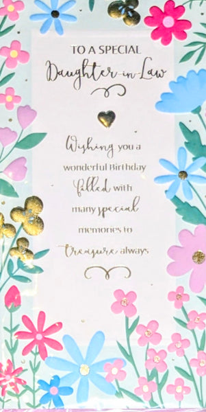A slim size Birthday card, To A Special Daughter - In - Law, with a full colour insert and a lovely verse.