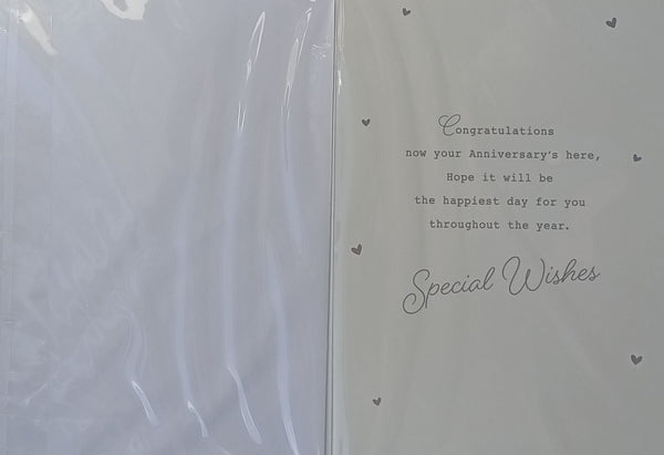 A standard size Anniversary card, Special Wishes On Your First Anniversary, with a full colour picture inside and a lovely verse.