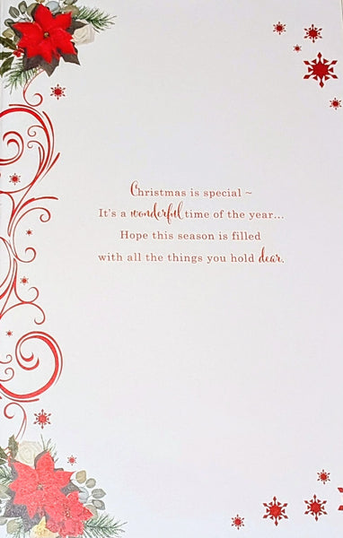 A large size Christmas card. To a special friend. A superb quality card With a full colour 8 page insert and a lovely verse over the 8 pages