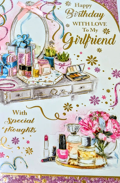 A large size Birthday card, To A Special Girlfriend, with a full colour picture insert and a lovely verse.