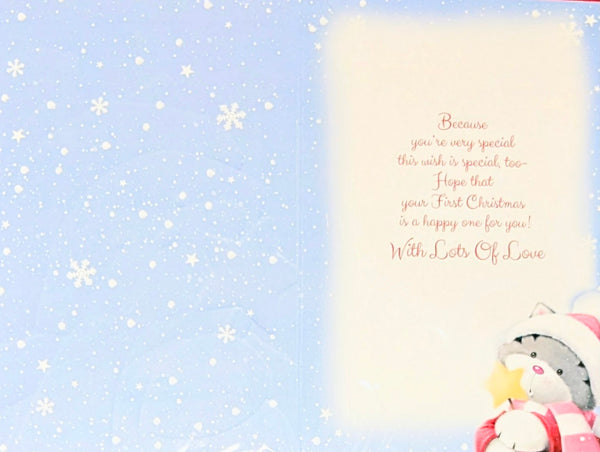 A bigger size Christmas card, To A Special Granddaughter On Her First Christmas, with a full colour picture insert and a lovely verse inside.