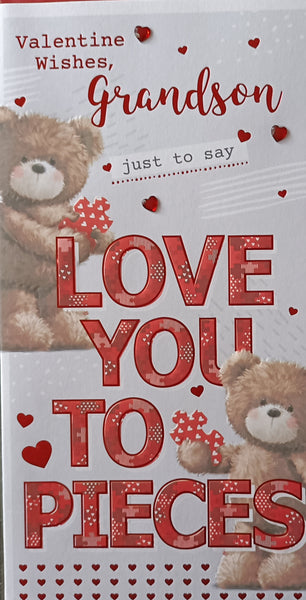 A slim Valentines card, To A Very Special Grandson, with a full colour picture insert and a lovely verse.