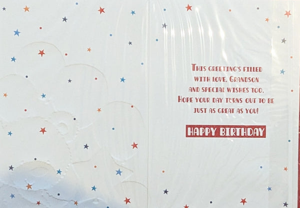 A standard size Birthday card, To A Wonderful Grandson, with a full colour design inside and a lovely verse.
