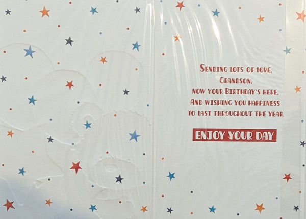 Grandson Birthday - Cute Bear With Balloons On Left