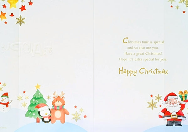 A standard size christmas card. To grandson. With a full colour design inside and a lovely verse.