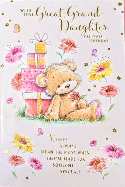 A bigger size Birthday card, To A Wonderful Great - Granddaughter, with a full colour inside and a lovely verse.