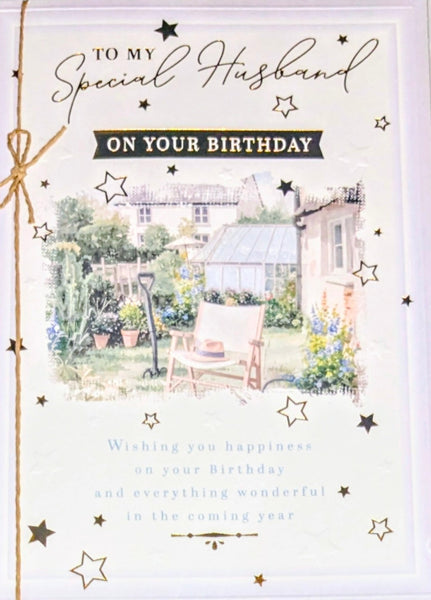 A large size Birthday card, With Love To My Husband, with a full colour picture insert and a lovely verse.