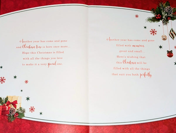 A large size Christmas card. To my wonderful mum and dad at Christmas. A superb quality card.With a full colour 8 page insert and a lovely verse over the 8 pages