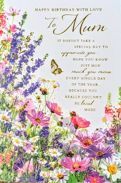 A bigger size Birthday card, With love Mum, with a full colour insert and a lovely verse.