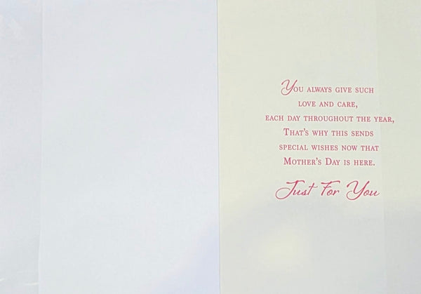 A standard size Mother's Day card, Happy Mother's Day, with a lovely verse inside.