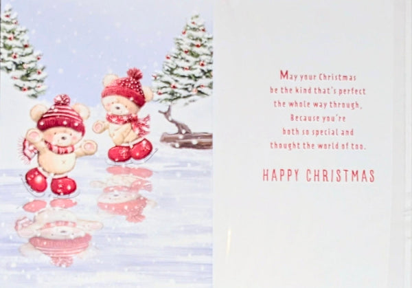 A standard size Christmas card, To a fantastic nanna and grandad at Christmas, With a full colour design inside and a lovely verse