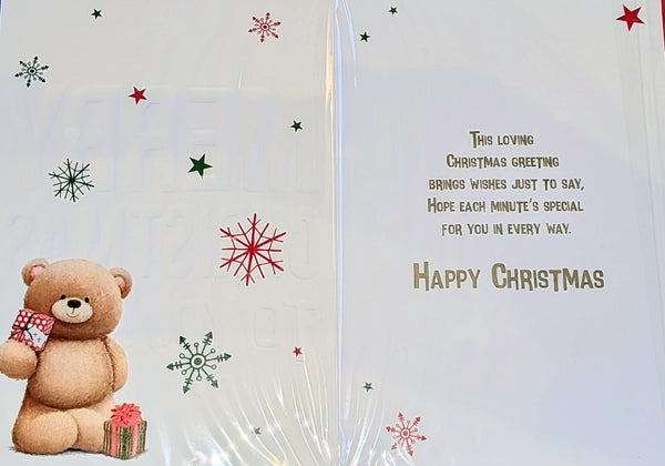 A standard size christmas card. To nephew. With a full colour design inside and a lovely verse.