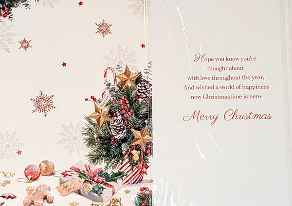 A standard size christmas card. To niece. With a full colour design inside and a lovely verse.