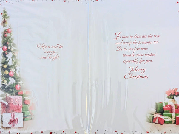 A standard size Christmas card, Wishing You A wonderful Christmas, with a full colour picture insert and a lovely verse.