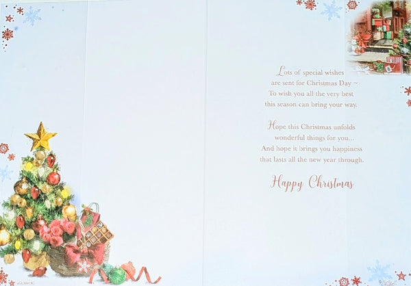 A standard size Christmas card, To A Special Sister & Brother - In - Law, with a full colour picture insert and a lovely verse.
