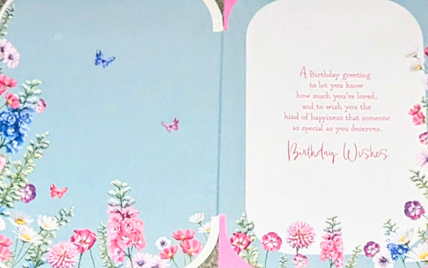 A large size Birthday card, To A Wonderful Sister, with a full colour picture inside and a lovely verse.