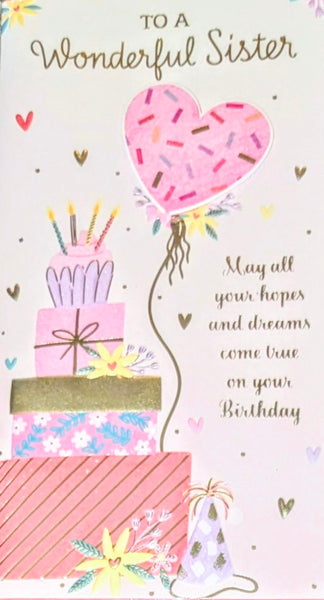 A slim Birthday card, To A Wonderful Sister, with a full colour picture insert and a lovely verse.