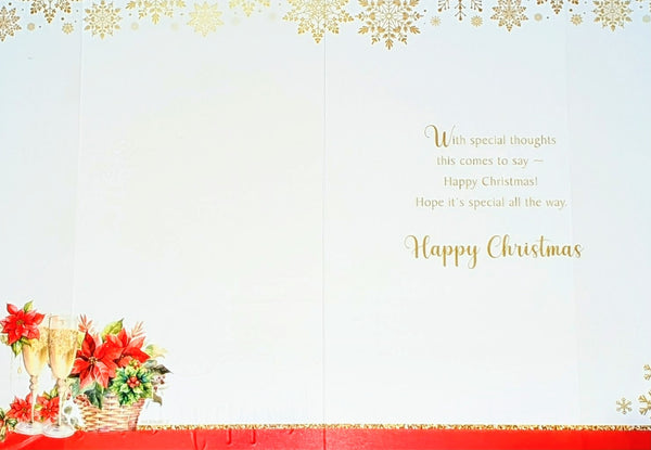 A standard size Christmas card, To A Lovely Son & Daughter - In - Law, with a full colour design inside and a lovely verse.