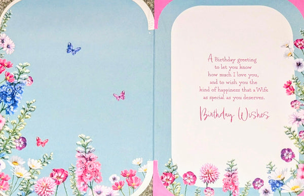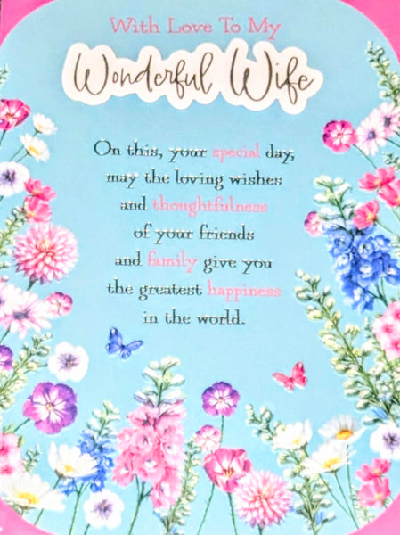 A large size Birthday card, To My Very Special Wife, with a full colour picture insert and a lovely verse.