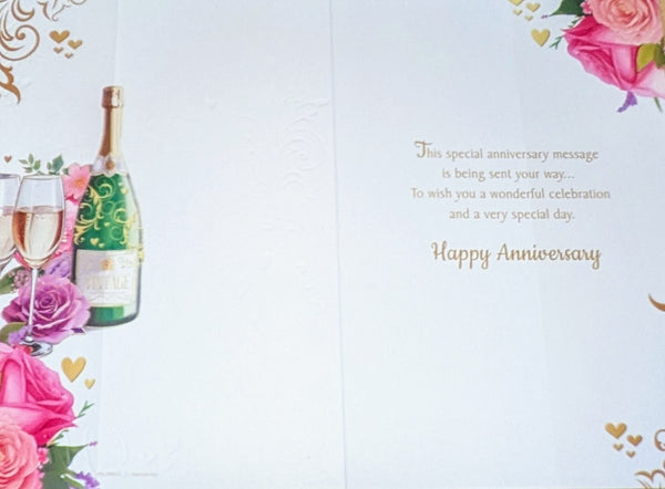 A standard size Anniversary card, Congratulations On Your Anniversary, woth a full colour design inside and a lovely verse.